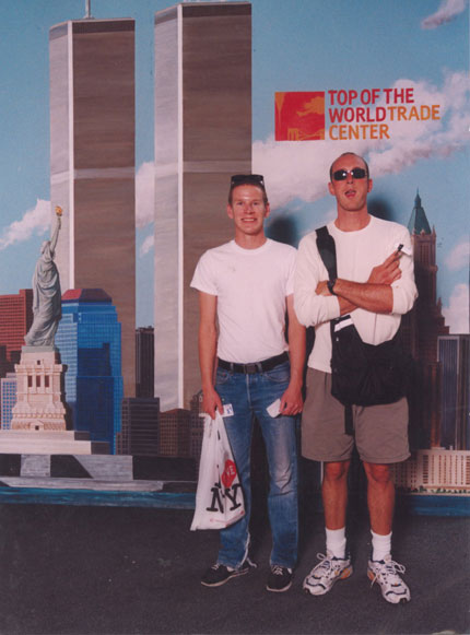 On my first trip to New York back in the mid-’90s, my friend Cory came along and for whatever reason, instead of going to the top of The Empire State building or some such, we decided to go to top of The World Trade Center. These are the photos they took of us at security and then tried to sell us as we were leaving. I’d be damned if I were going to purchase such a thing but as we went by, Cory asked to see them, the guy handed both to him, and by god, he walked out with them. I am so glad he did.