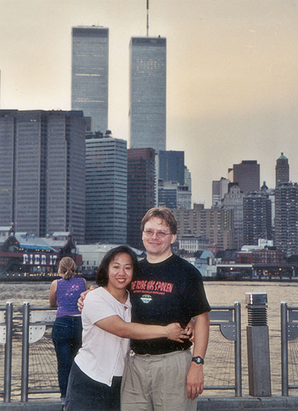 This picture was taken roughly one year before 911. It was my second trip to New York City where my wife was from. Both the Empire State Building and the World Trade Center were something I wanted to see all my life. I remember standing at the foot of the towers and looking up trying to take in their size. Curiously, my wife and I visited the site of the Triangle Shirtwaist Factory Fire not terribly far from the WTC and I remember thinking of the enormity of that tragedy because people were forced to jump from the top floor of the burning building.