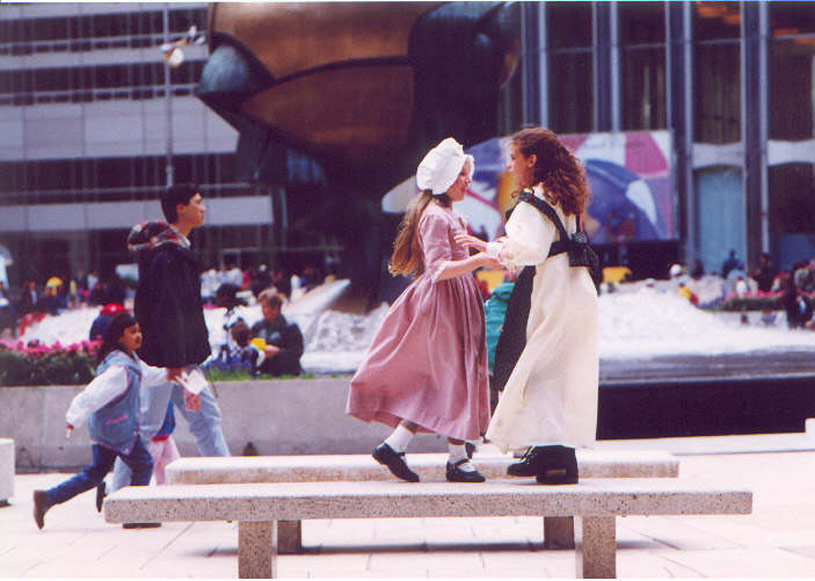 Consequently, we did a lot of work with living history museums – so when PBS-TV (the Public Broadcasting network that launched „Sesame Street“) sponsored „Children’s Day at The World Trade Center“, we were invited to participate, performing various dances from Colonial America, and historic sword dances, in costume.
