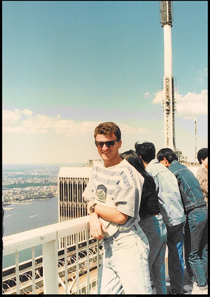 The picture was taken by my then-wife of me in September 1991. We were travelling around the world from Australia to Ireland for my sister’s wedding and a trip to the top of the WTC was on our must do list when we visited New York.