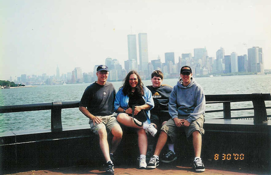 This was a family vacation photo taken the year prior to 9/11. We were visiting the Statue of Liberty (we are from Boston) and a kind stranger offered to take a family portrait. The boys are adults now and one actually lives in NYC.