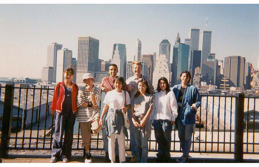 The Intensive English classes were for students visiting NYC — from 2 weeks to several months. Monday through Thursday we studied, but every Friday we took a trip to some location in the city. I wanted my students to see the best of the city and to help them navigate beyond Midtown Manhattan. On this day we took the subway to Brooklyn and walked to the Brooklyn Promenade. Later we walked back to the city, over the Brooklyn Bridge, through Chinatown and Soho. We took this photo because it was a great souvenir — everyone in the world knew the WTC buildings: they were New York City. What my students didn’t know: I saw this view everyday from my apartment windows.