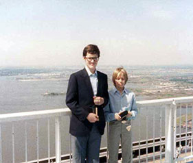 I took this pictures while there for a class trip in 1983. My junior-high buddy, Glen, and me standing at the rail of the World trade Center rooftop observatory.