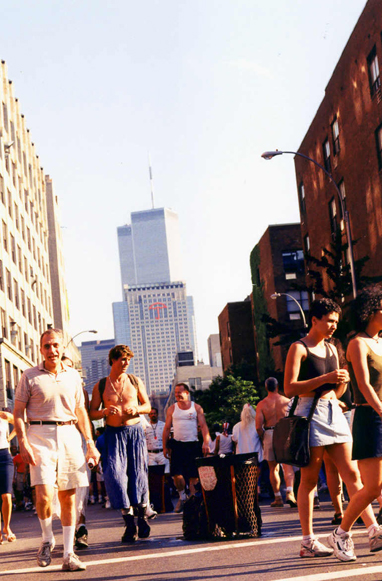 The photo was taken in the West Village on Christopher Street perhaps and Hudson Street after the annual NYC Gay Pride Parade on Sunday evening, 29 June 1997