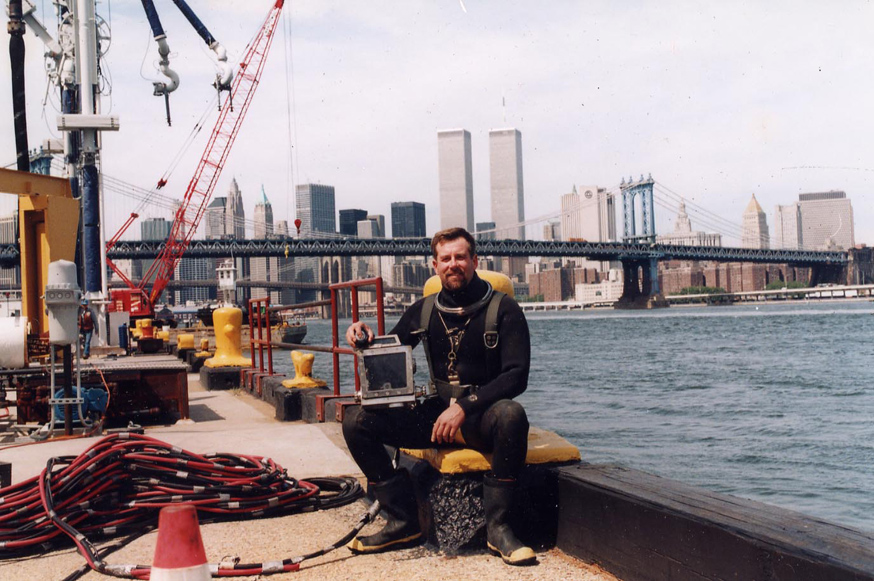 John Chatterton – In Brooklyn, NY, working at the Con Edison Hudson Avenue Generating Station. The World Trade Center and Manhattan Bridge are in the background.