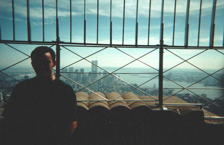 I was there twice; once in 1993 where we just went to the south tower viewing gallery (107th floor) and again in June 2001 when I visited the viewing gallery again and the roof terrace. I remember that the terrace walkway was raised above the uneven roof level, but set well back from the edge, there was an electric fence nearer the edge to stop people from jumping off, and there was a helipad in the middle.