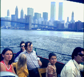 Taking the Hudson River trip with my parents and The Muellers. WTC still under construction. You can see construction cranes on the top if you look really hard.