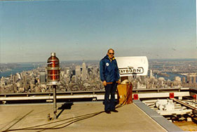 Dad: „Good memory. This was taken during the New York Marathon and the tracker was to follow the Helicopter taking video of the runners. It functioned as a relay link to the studio.“