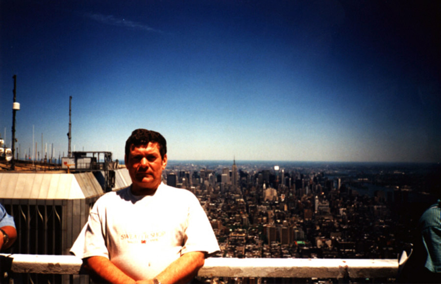 Just a great experience being on top of the World Trade Center on bright sunny day, the second tower behind me, and Empire State in the distance.