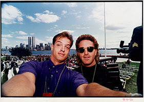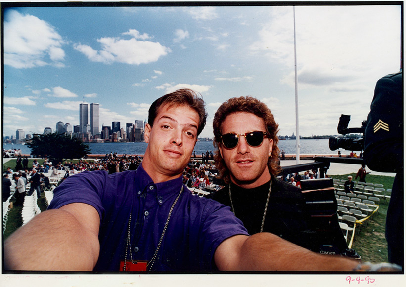 One self-portrait taken in 1990 of my friend Jim Anness and I as we covered the re-dedication of Ellis Island, the WTC composed over Jim’s right shoulder.