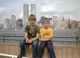 On this particular trip, my mom was performing in a choir concert at the Central Railroad of New Jersey Terminal at Liberty State Park. The concert was part of the centennial celebration of the Statue of Liberty and Ellis Island. My dad snapped this photo of me and my brother Rob in front of the famous skyline at some point during the proceedings.